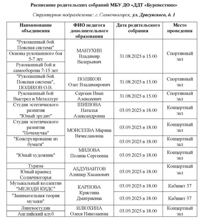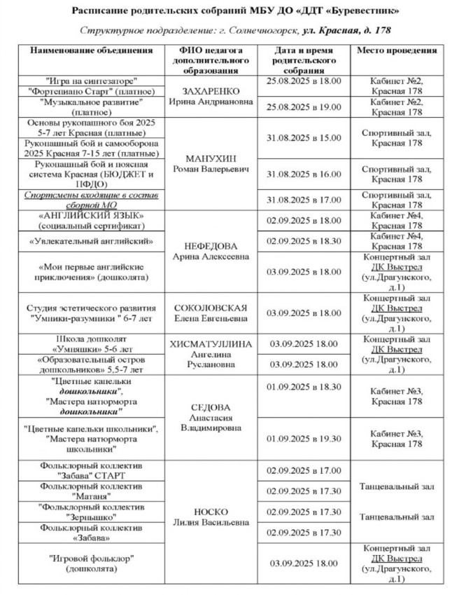 Дом детского творчества "Буревестник" приглашает Вас на родительские собрания.